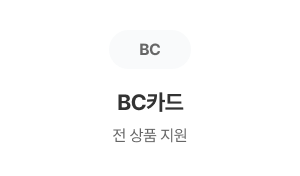 우리, 하나, BC카드 등 모든 카드사 지원.